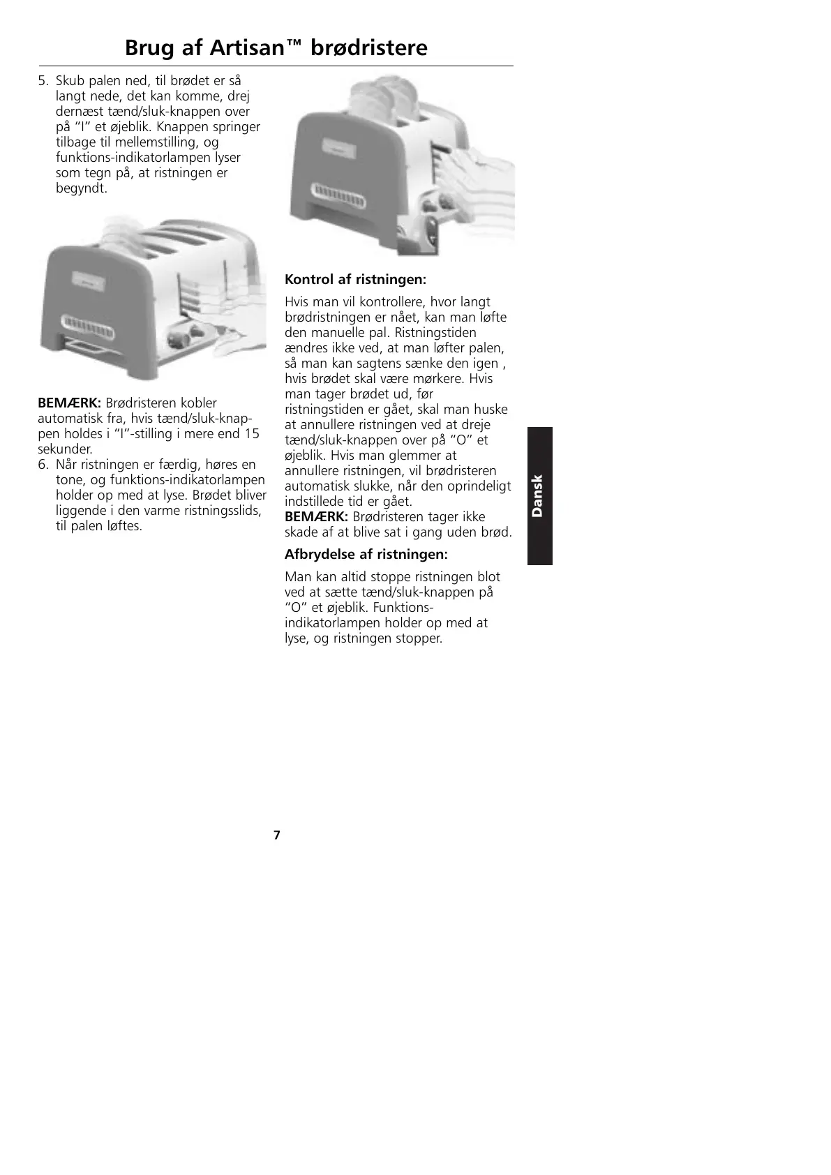 Brug af Artisan™ brødristere