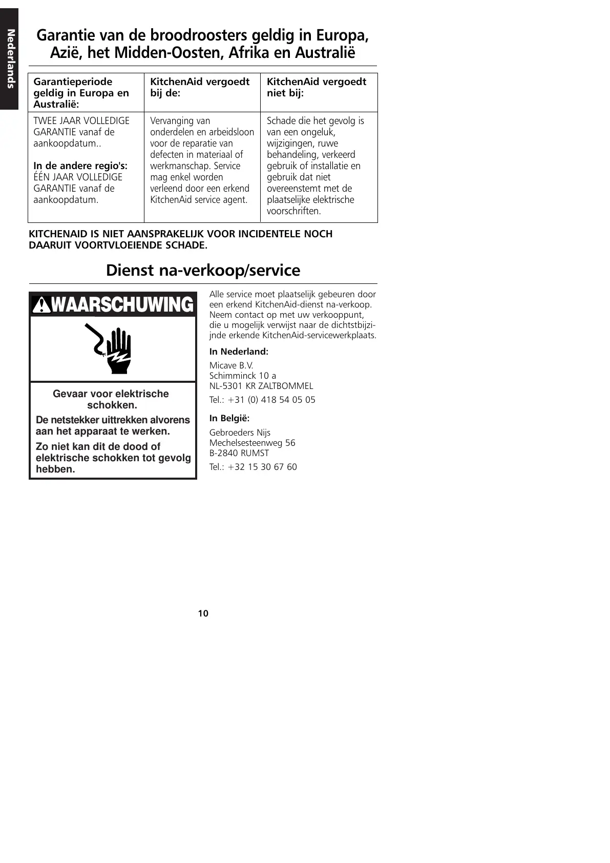 KITCHENAID IS NIET AANSPRAKELIJK VOOR INCIDENTELE NOCH