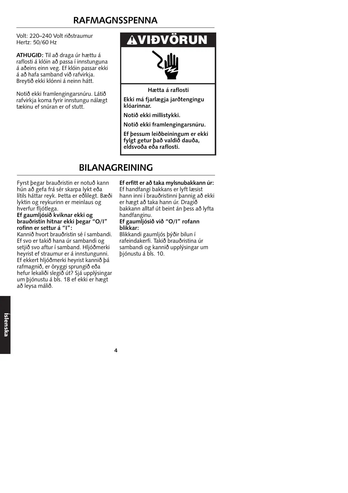 brauðristin hitnar ekki þegar “O/I”