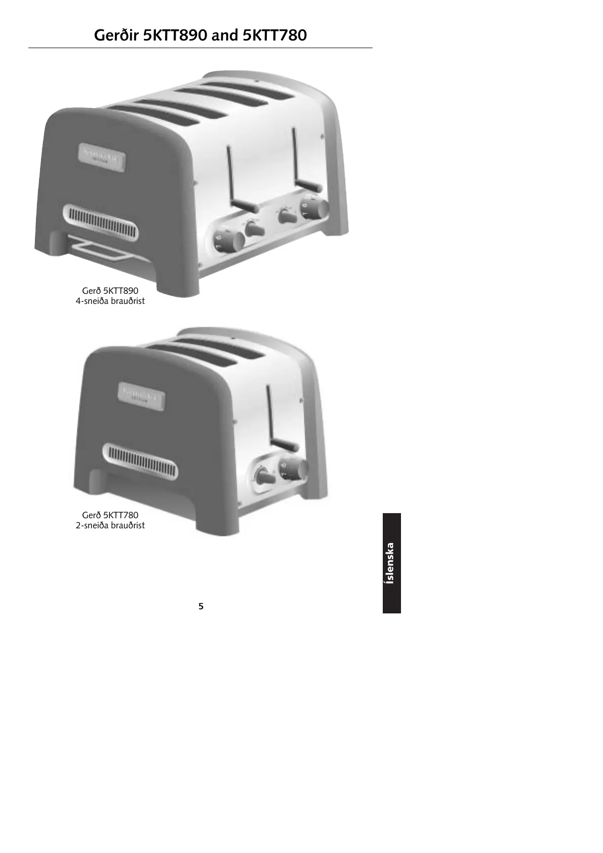 KitchenAid ARTISAN 5KTT780AOB1 - Gerðir 5 KTT890 and 5 KTT780