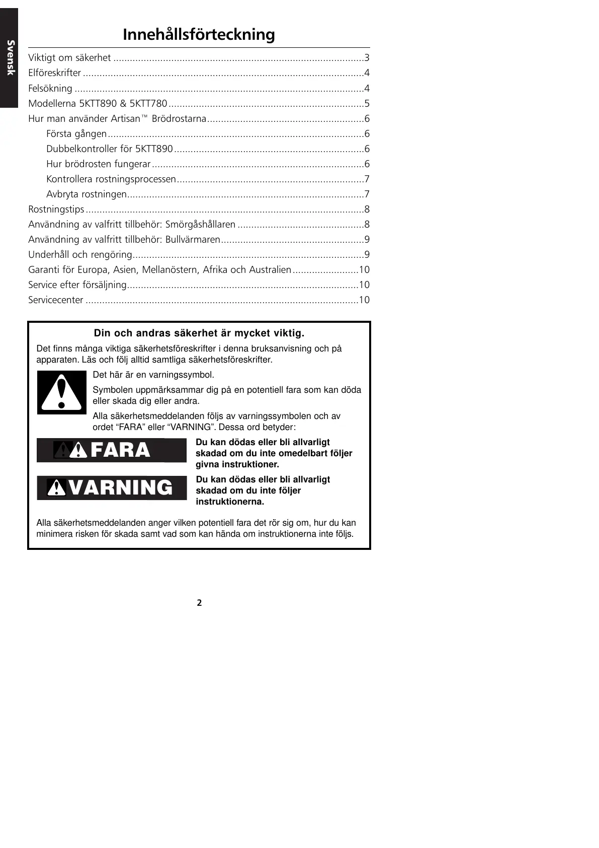 Hur man använder Artisan™ Brödrostarna.........................................................6