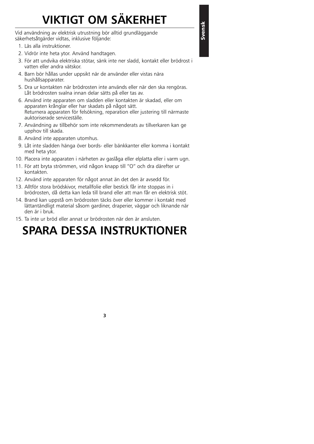 15. Ta inte ur bröd eller annat ur brödrosten när den är ansluten.