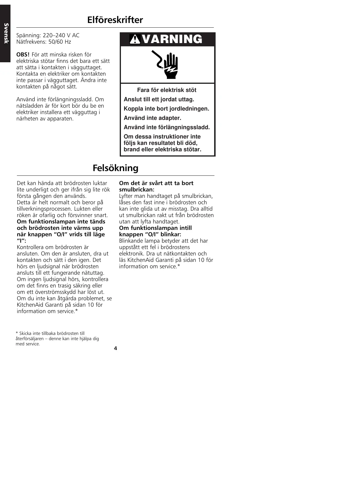 läs KitchenAid Garanti på sidan 10 för