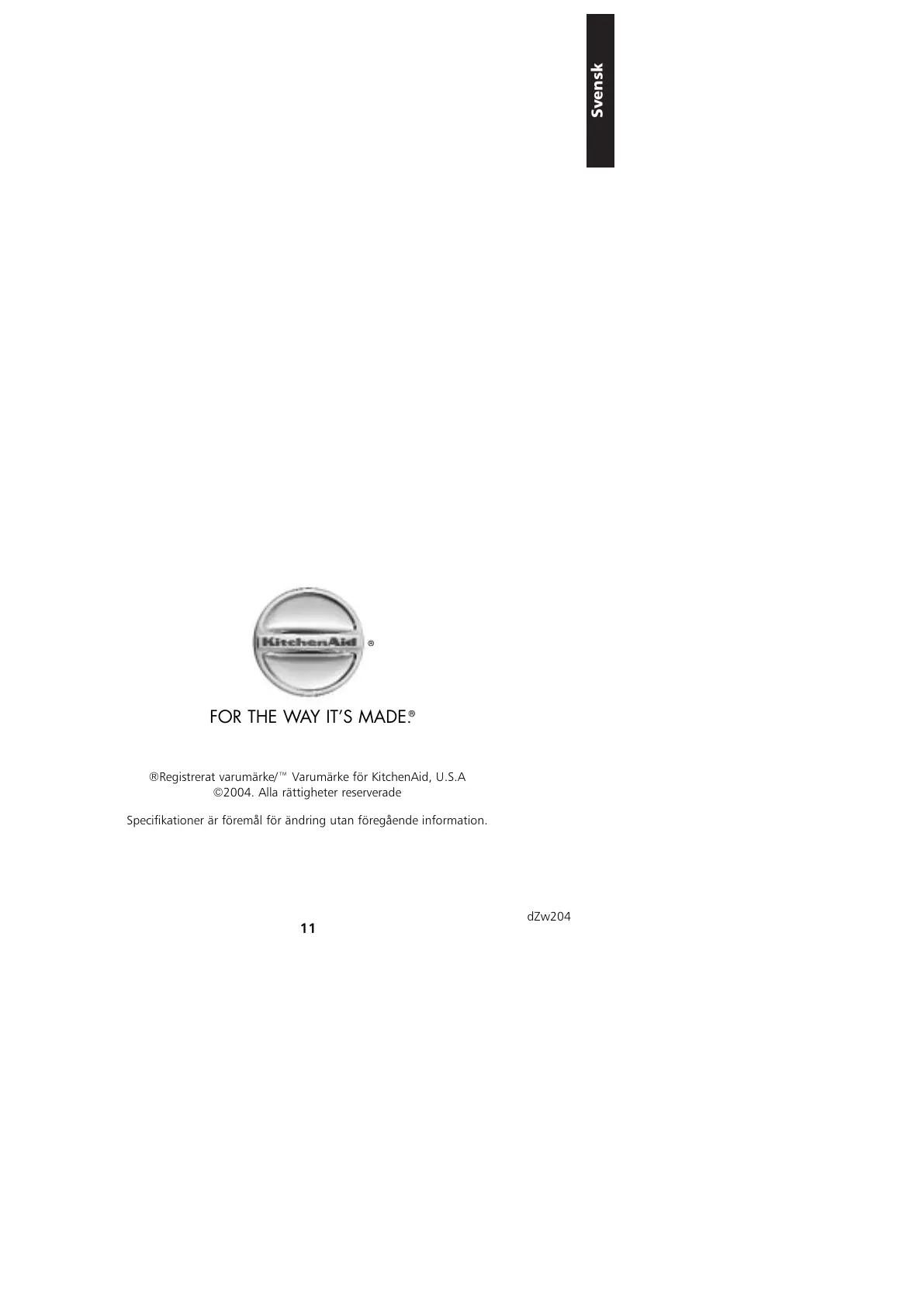 ®Registrerat varumärke/™ Varumärke för KitchenAid, U.S.A
