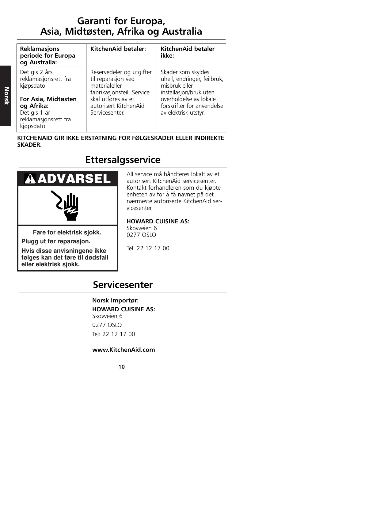 KITCHENAID GIR IKKE ERSTATNING FOR FØLGESKADER ELLER INDIREKTE