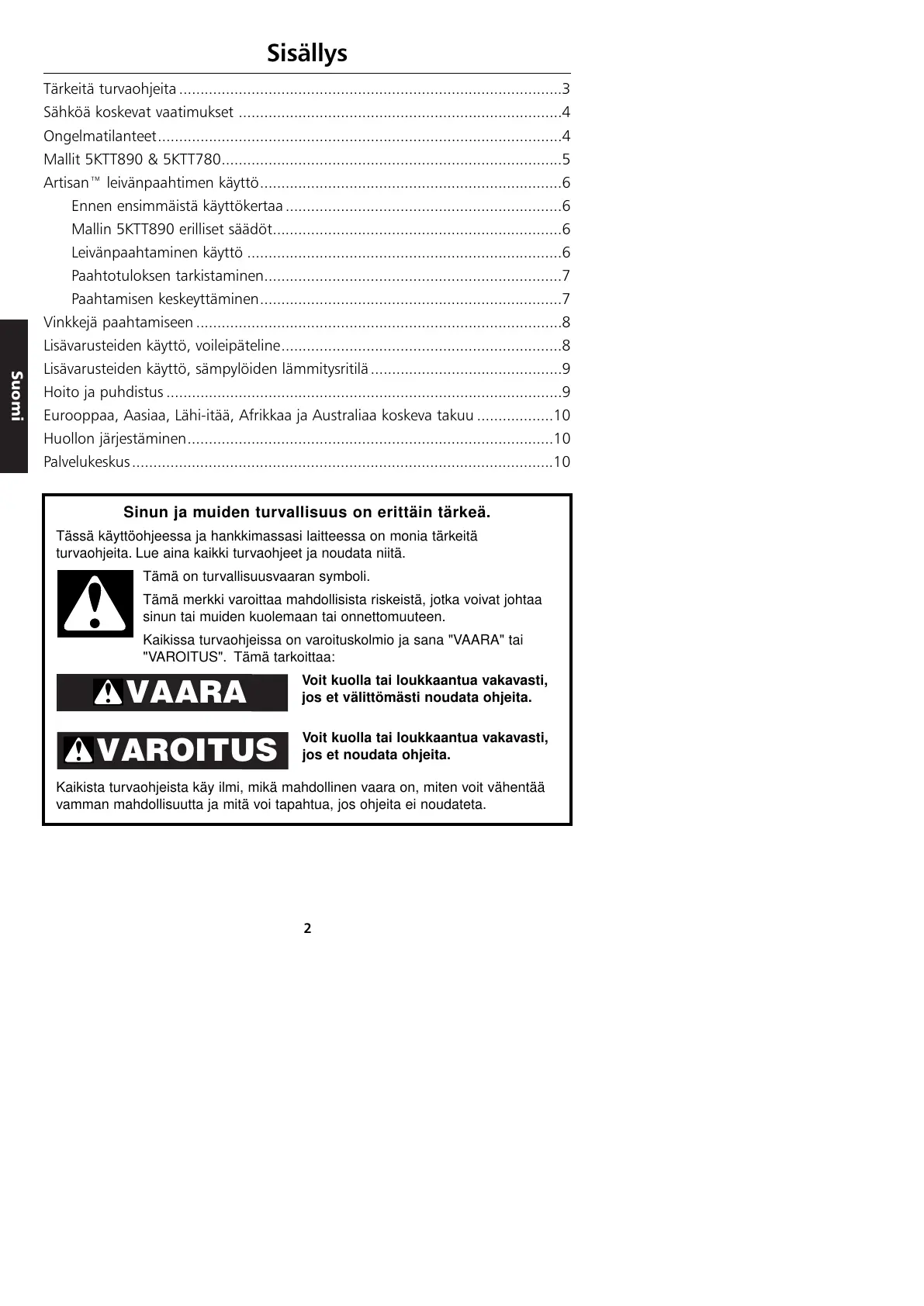 Artisan™ leivänpaahtimen käyttö.......................................................................6