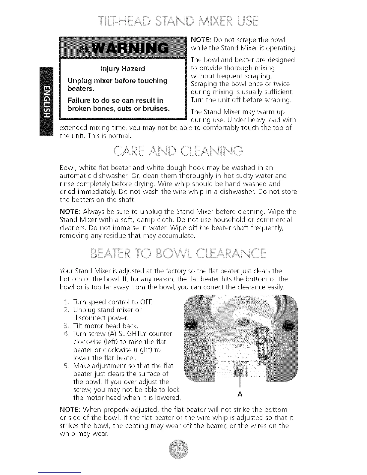 Your Stand Mixer isadjusted at the factory so the flat beater just clears the