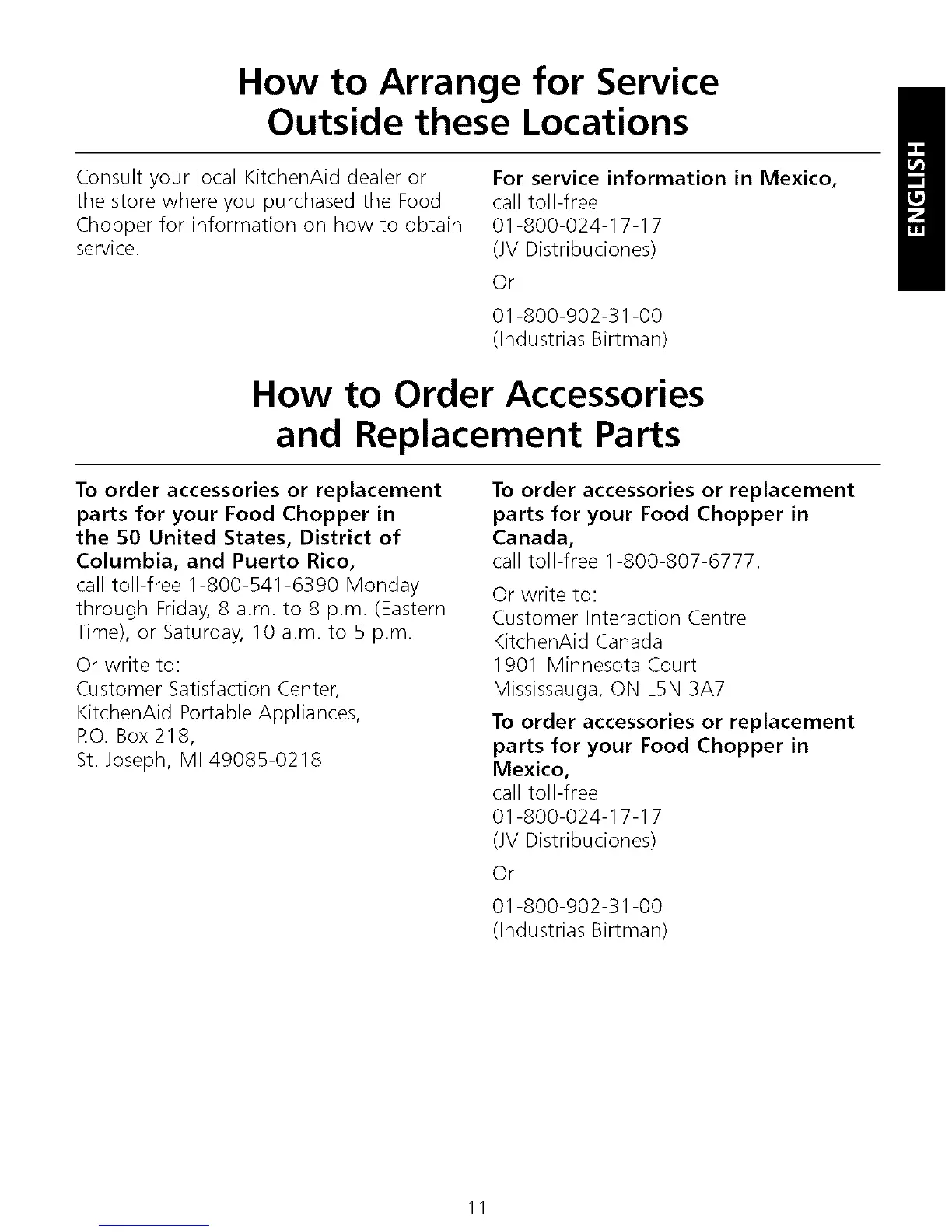 For service information in Mexico,