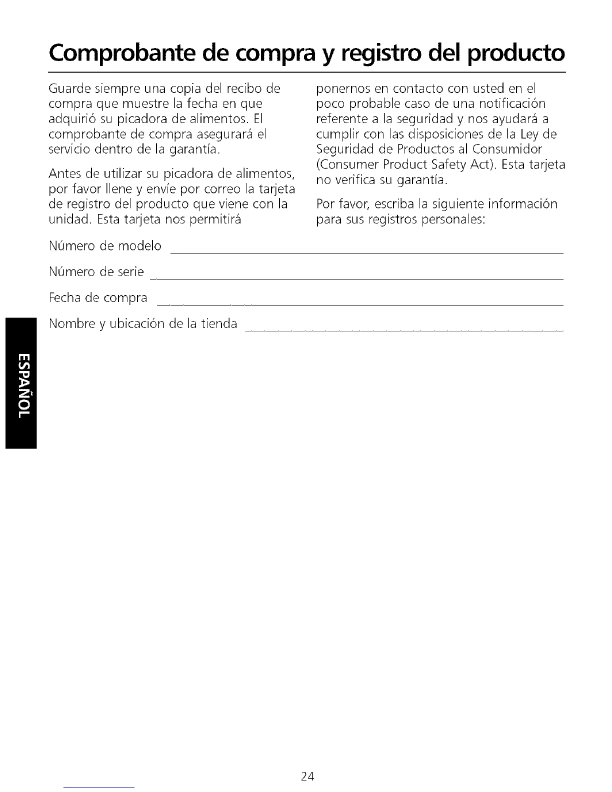Comprobante de compra y registro del producto