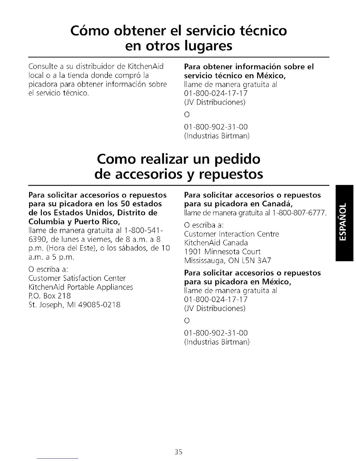 Para solicitar accesorios o repuestos