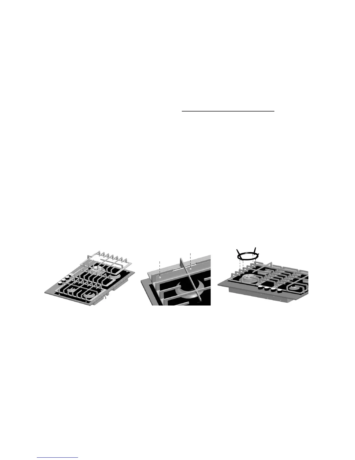 Position the pan supports by inserting the locating pins at the rear of the hob into the slots found at