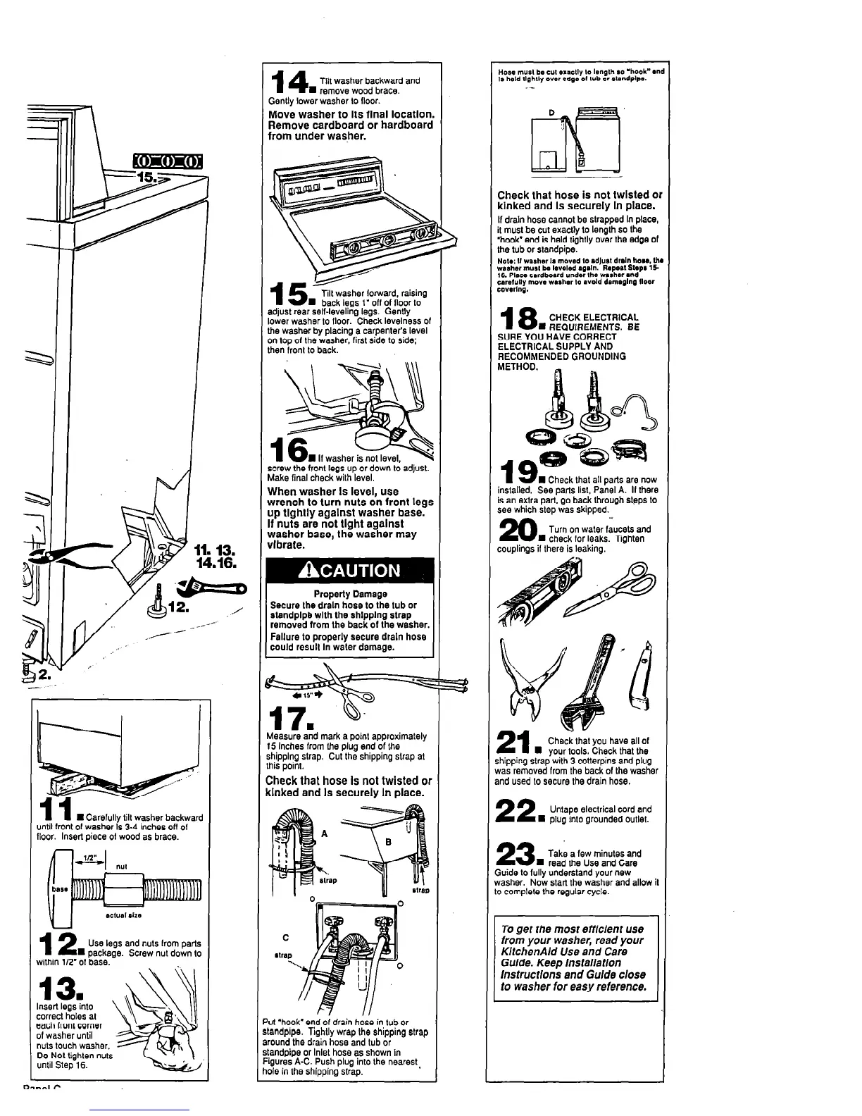 lower washer 10 Ooor. Check levelness of