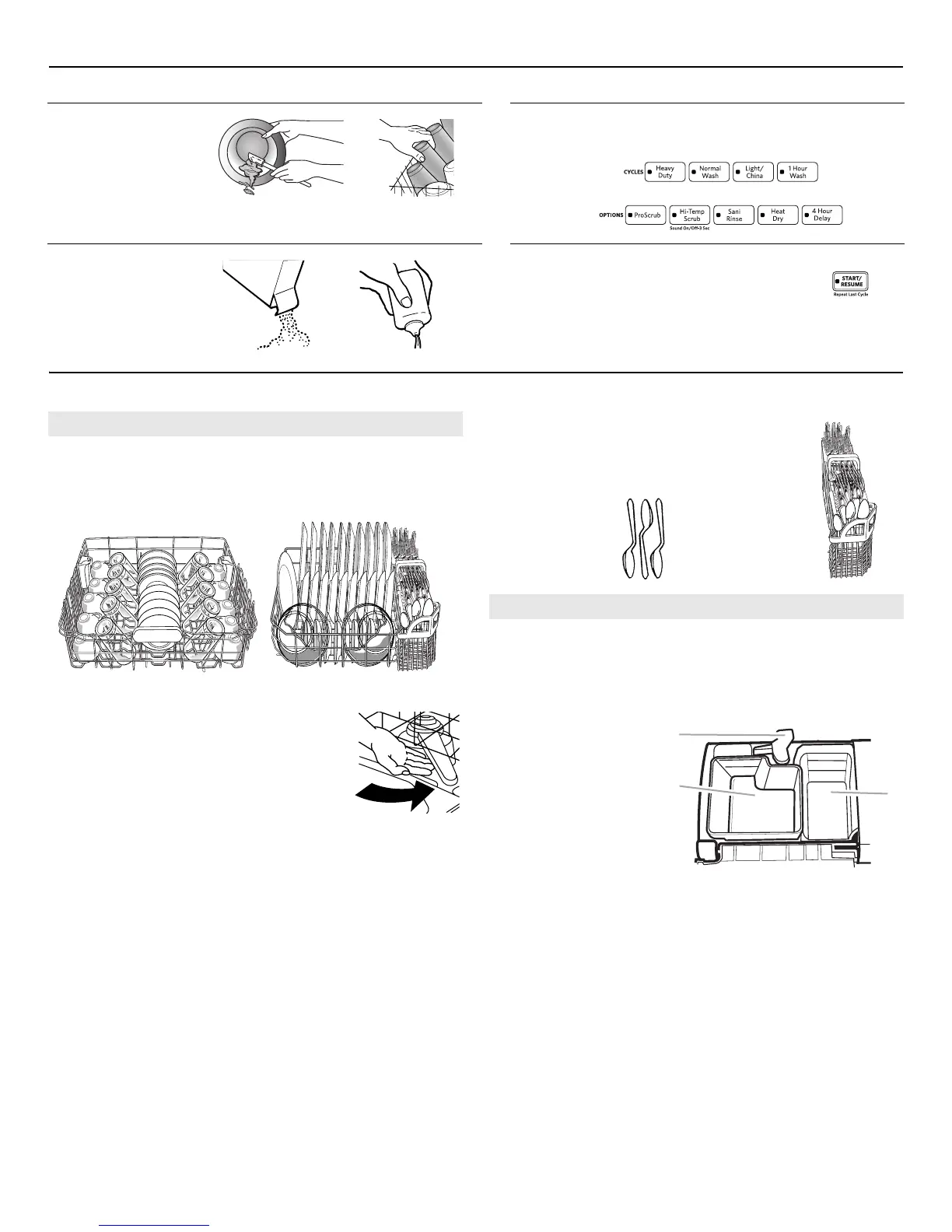 ■ Use automatic dishwasher detergent only. Add powder, liquid
