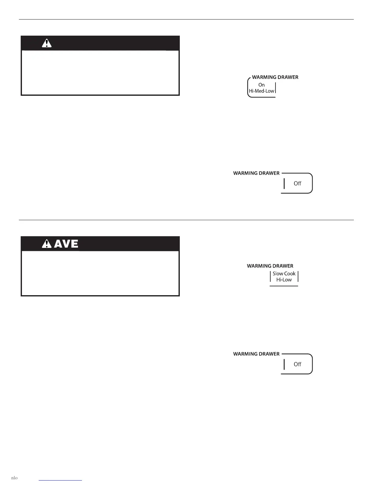1. Appuyer sur WARMING DRAWER ON (tiroir-réchaud marche)