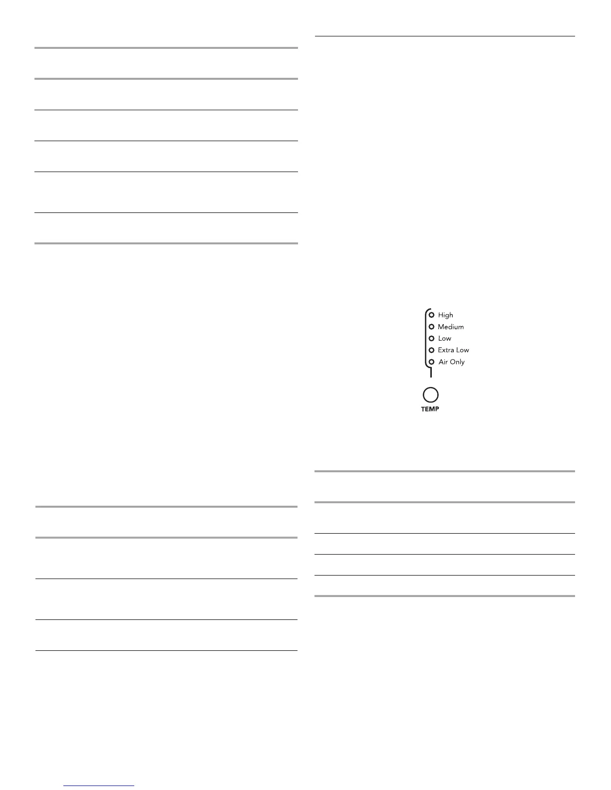 Temperature settings are used with the Manual Cycles. Press