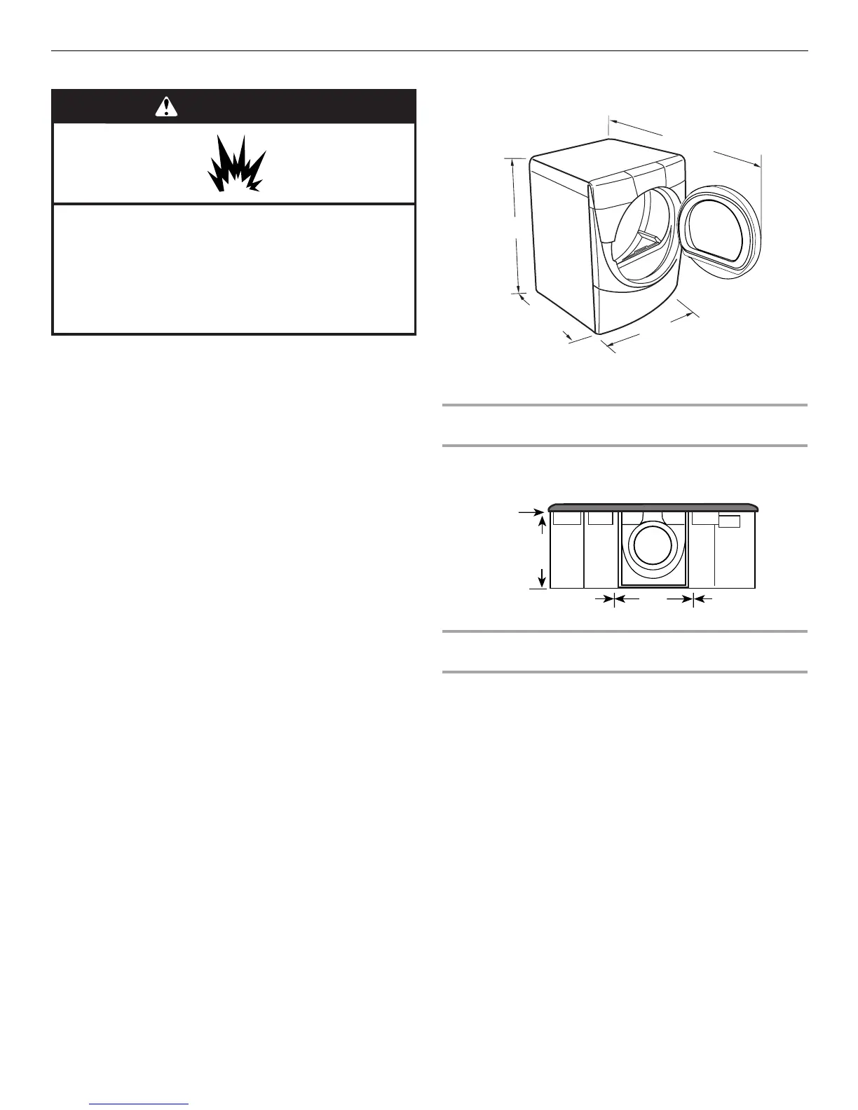 ■ Additional spacing of 1" (2.5 cm) on all sides of the dryer is