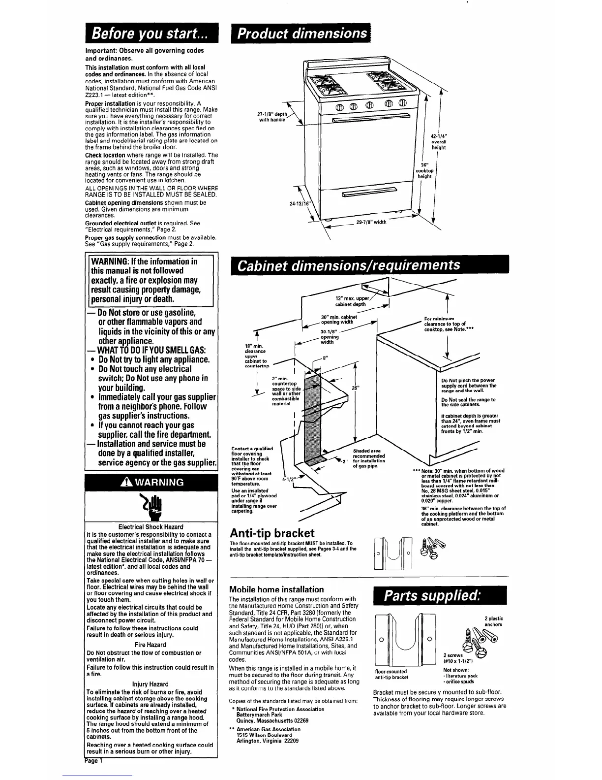 install the anti-tip bracket supplied, see Pages 3-4 and the