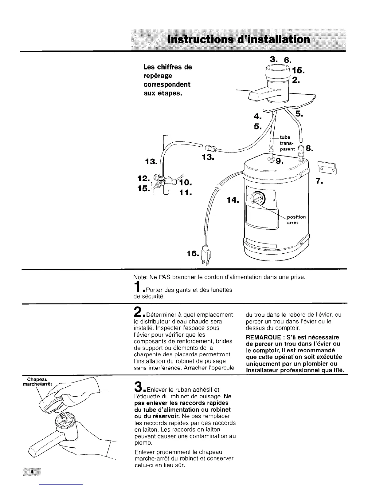 l’etiquette du robrnet de puisage. Ne