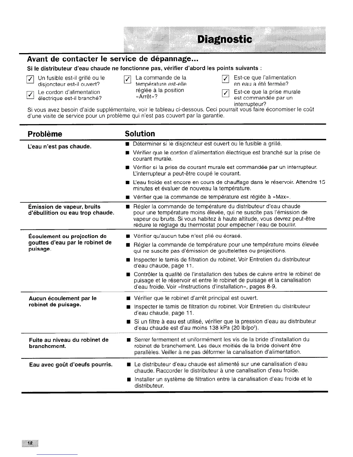 Si le distributeur d’eau chaude ne fonctionne pas, verifier d’abord les points suivants :