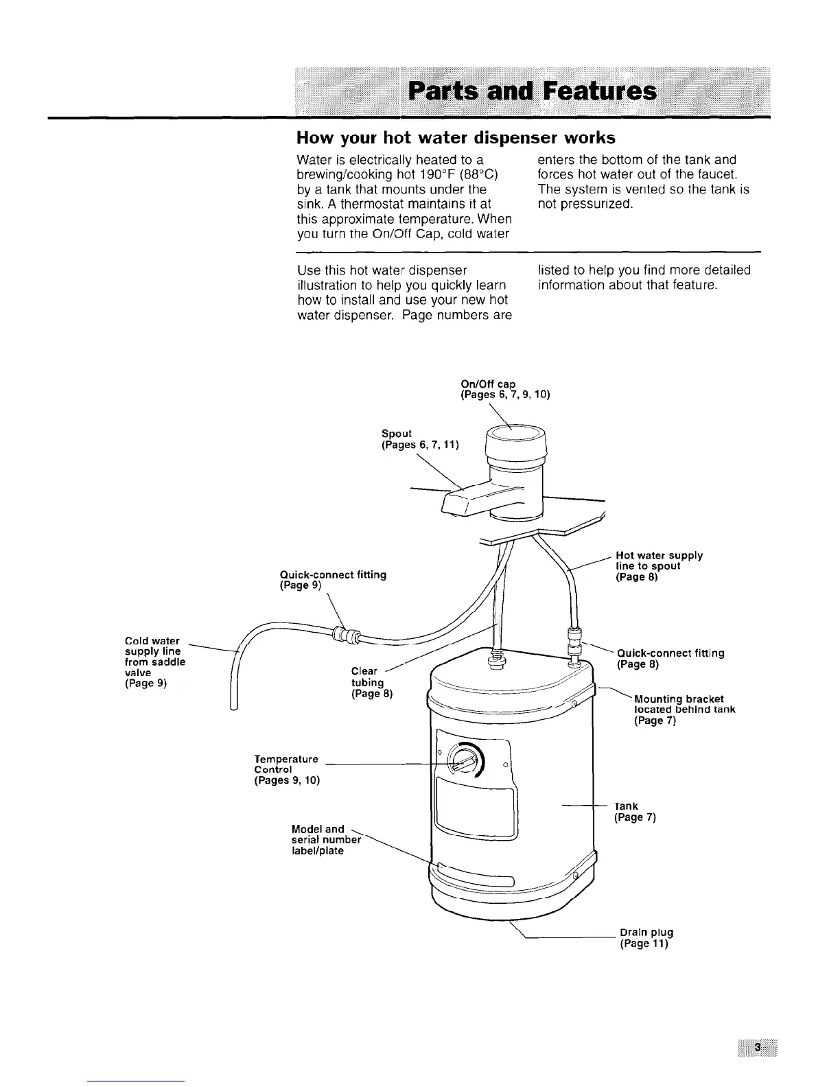 water dispenser. Page numbers are