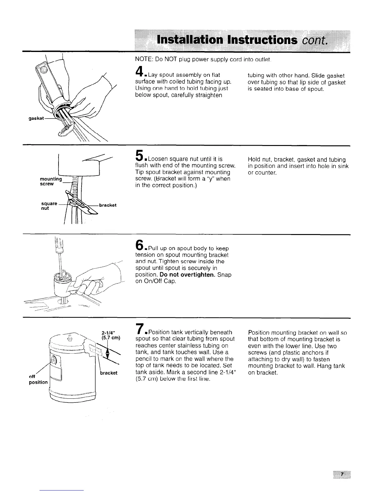 spout so that clear tubing from spout that bottom of mounting bracket is
