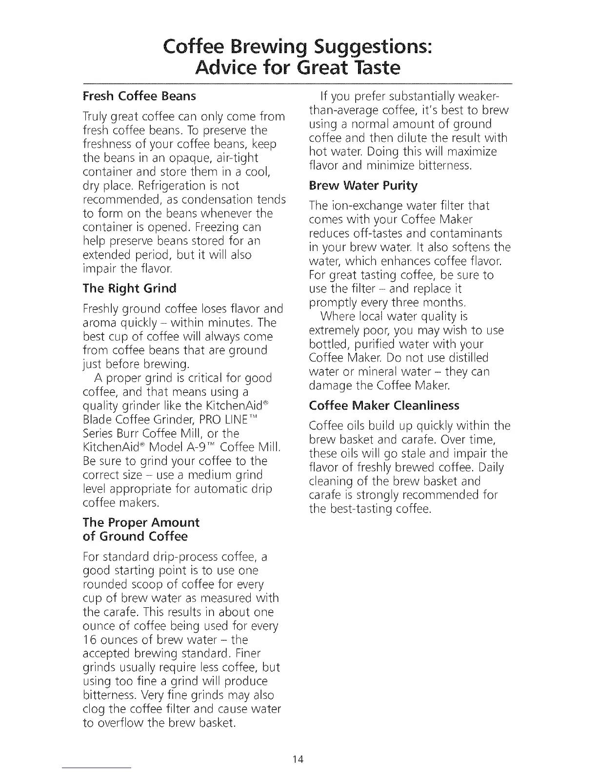 For great tasting coffee, be sure to