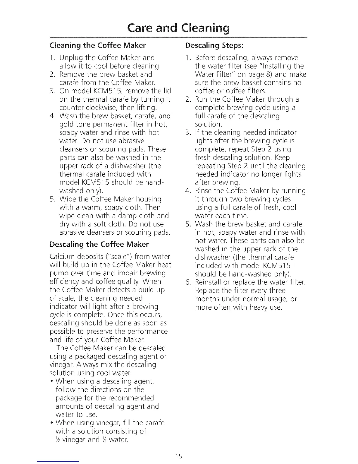 model KCM515 should be hand-
