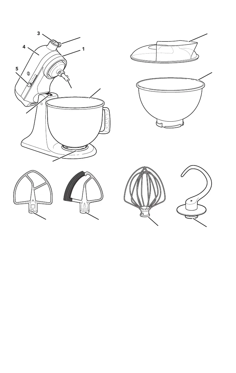 KitchenAid K45 Series - KitchenAid Stand Mixer Parts Identification; Main Mixer Assembly; Mixing Attachments and Accessories