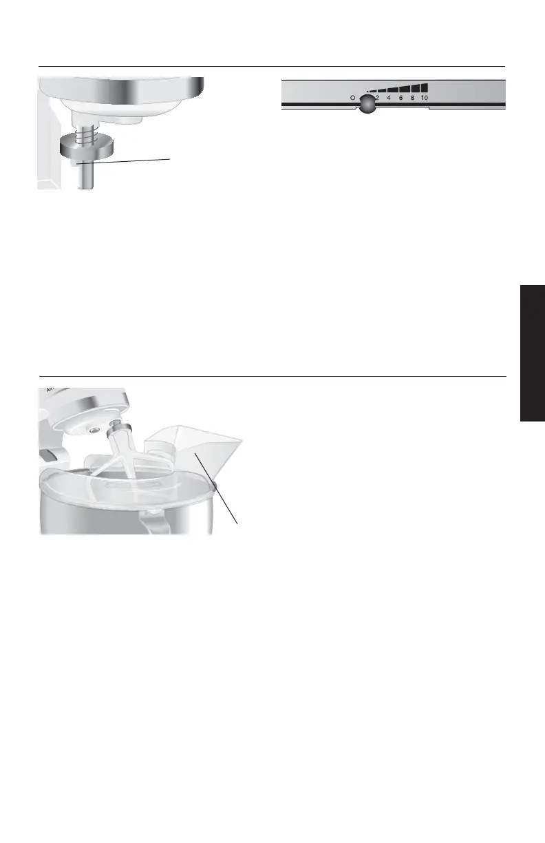 3. 安装平搅器、面团钩或打蛋器和桶(请