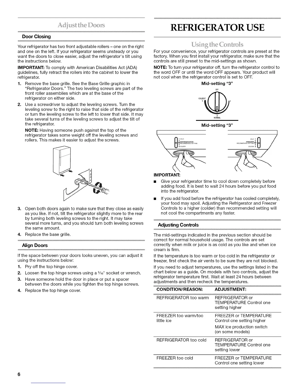 your food may spoil. Adjusting the Refrigerator and Freezer