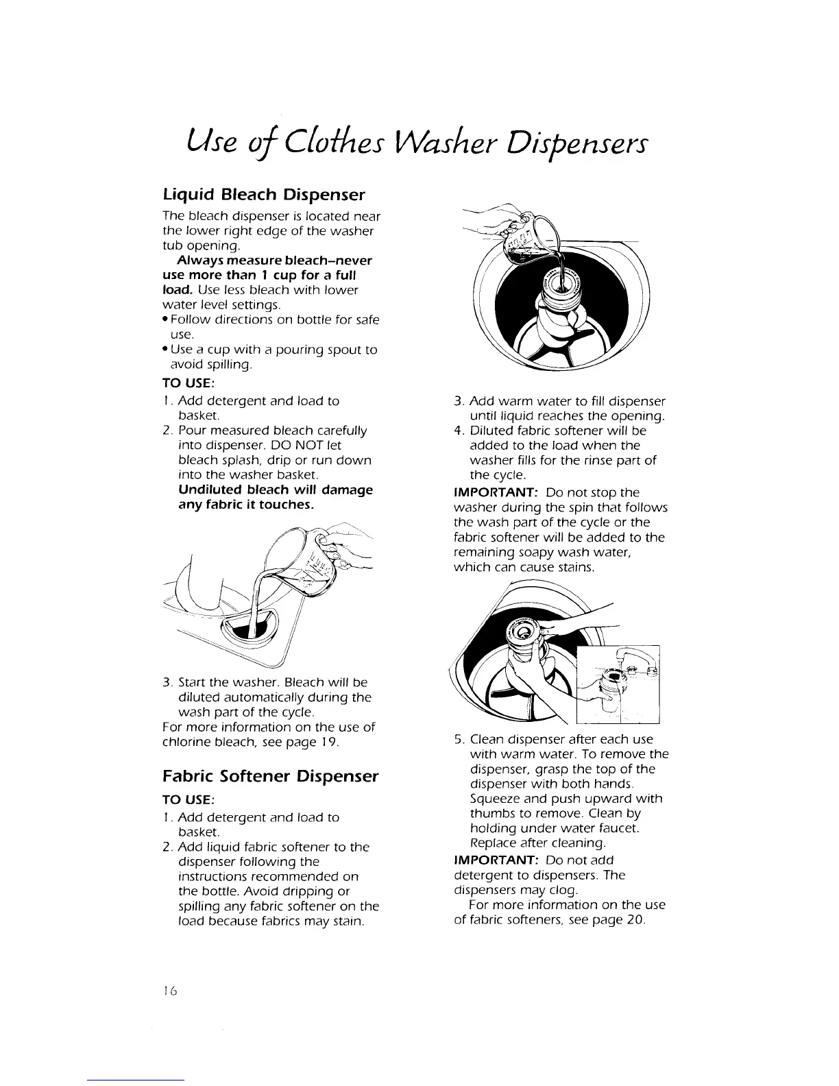KitchenAid KAWE755V - Use of Clothes Washer Dispensers; Liquid Bleach Dispenser; Fabric Softener Dispenser