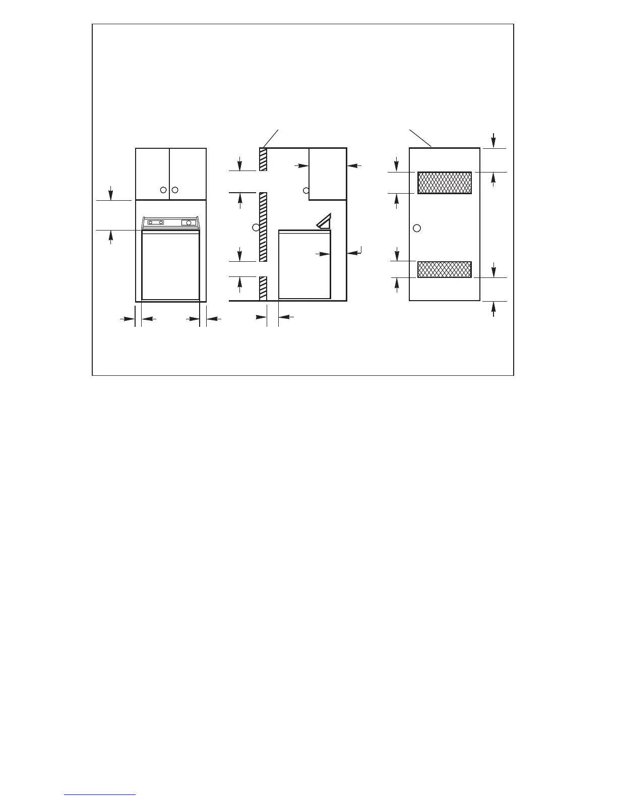 L'es[acement d'installation est le minimun permis. On prévoira un peu plus d'espace pour faciliter l’installation et l’entretien.