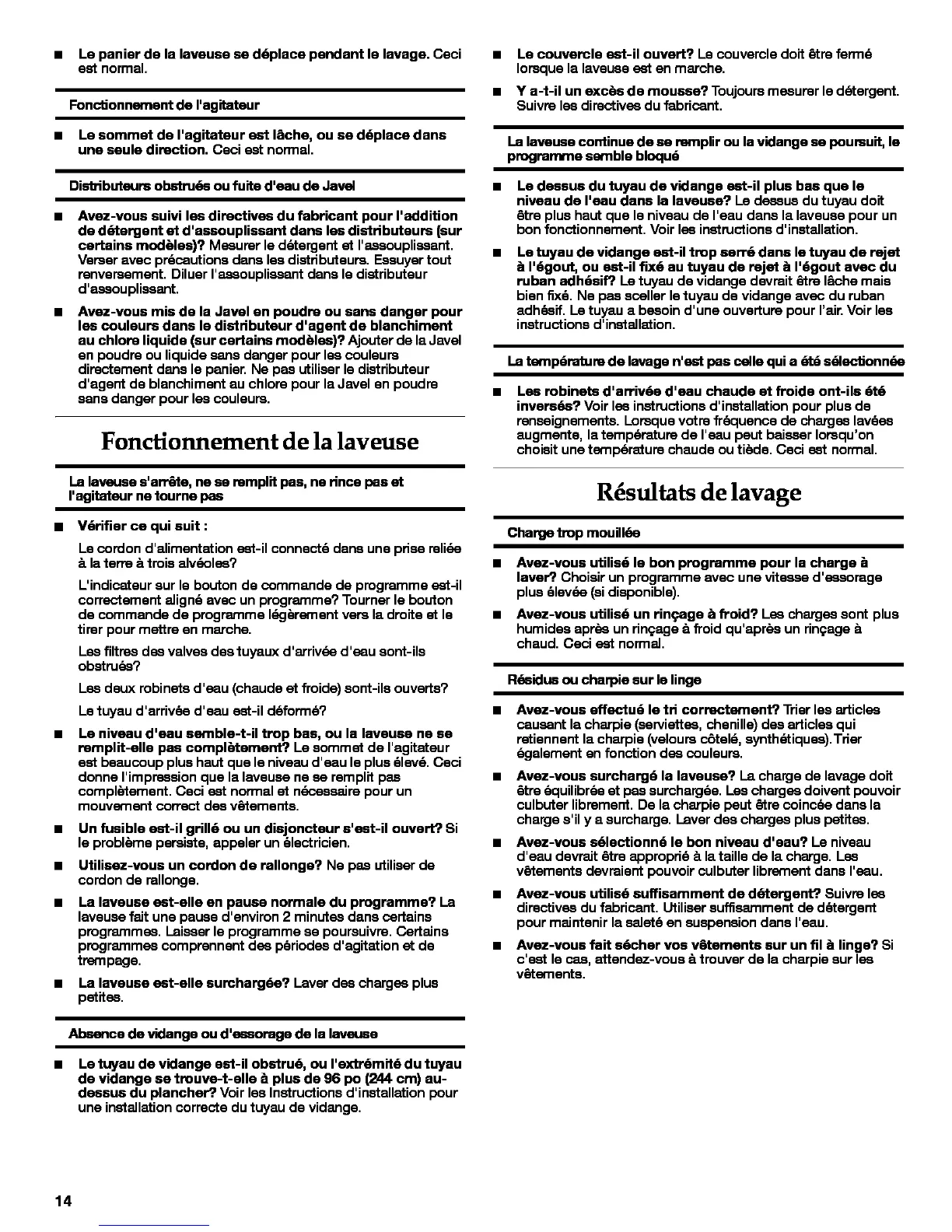 Avez-vous surcharg6 la laveuse? La charge de lavage doit