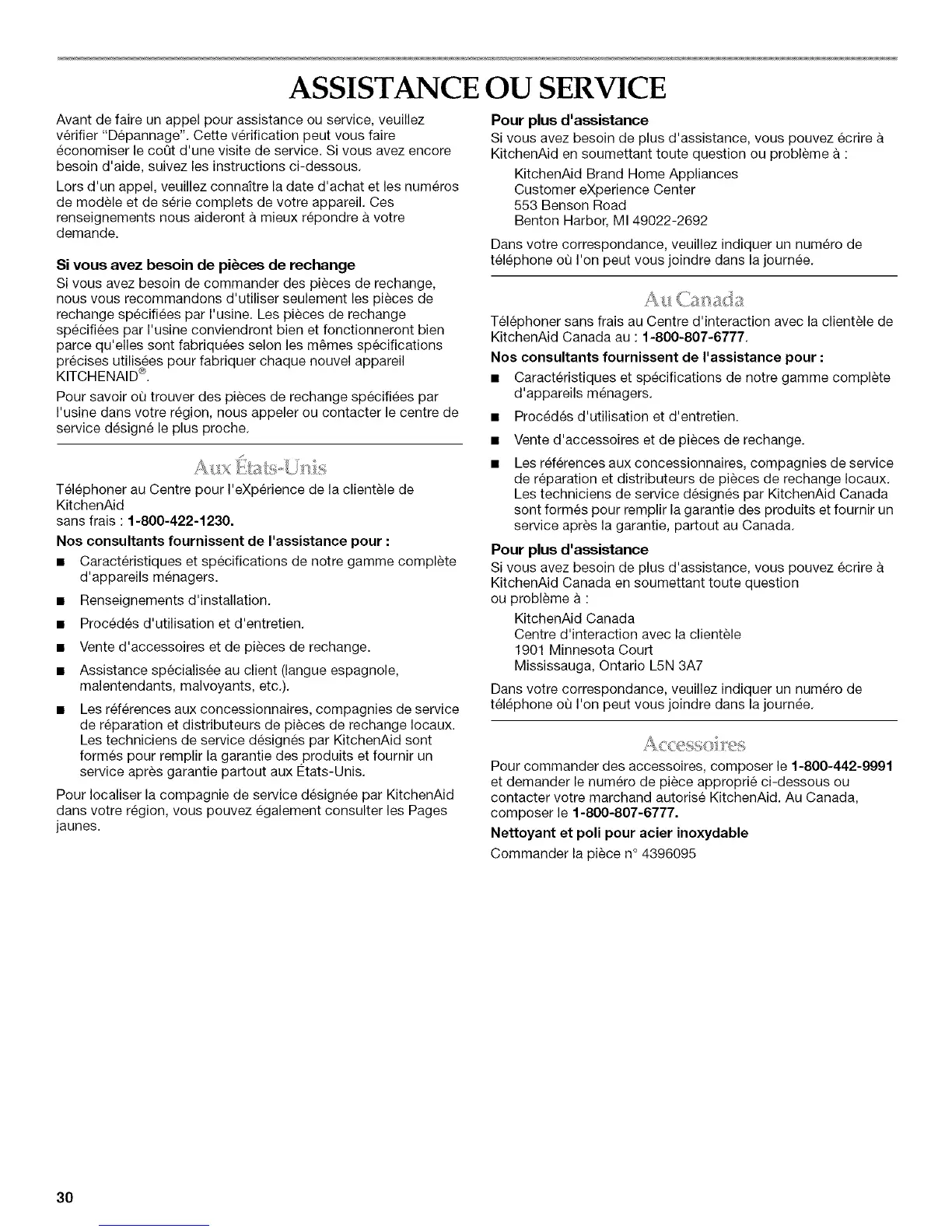 contacter votre marchand autorise KitchenAid. Au Canada,