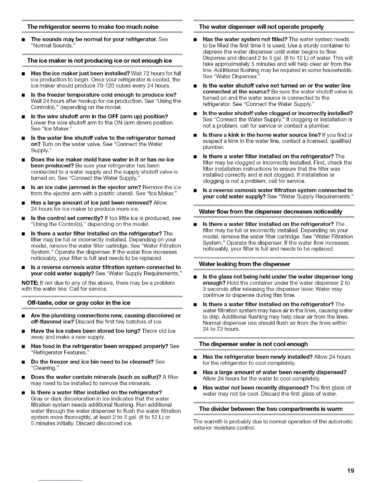 • Has the ice maker just been installed? Wait 72 hours for full