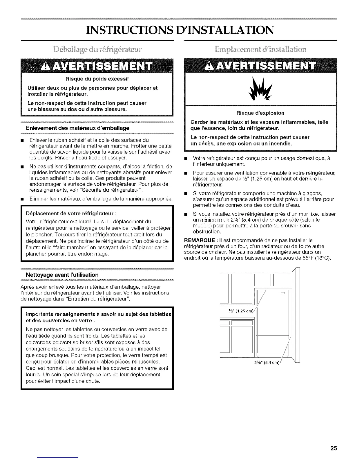 deplacement. Ne pas incliner le refrigerateur d'un c6te ou de