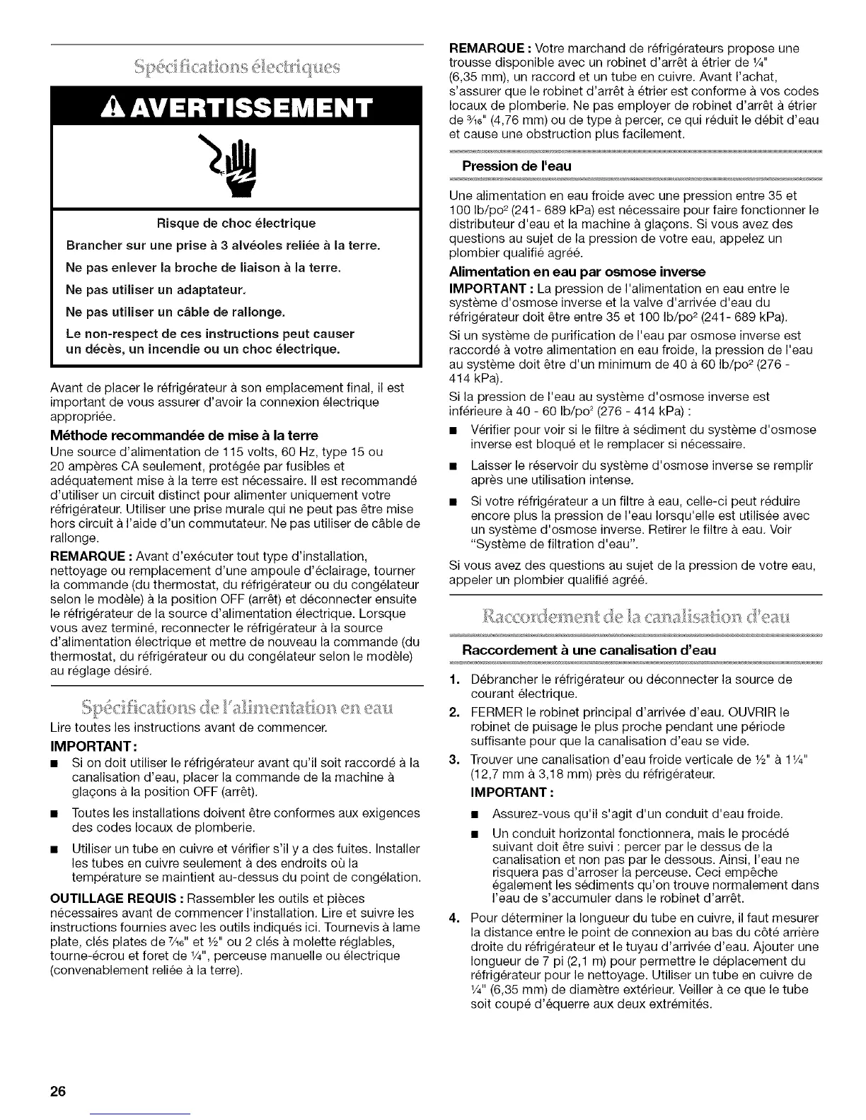 • Si on dolt utiliser le refrigerateur avant qu'il soit raccorde a la