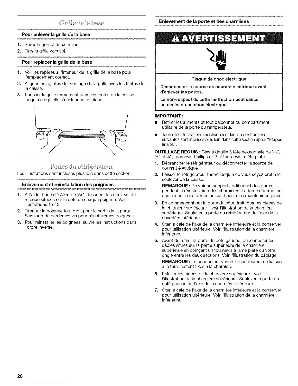 superieure, Soulever la porte du refrigerateur de I'axe de la