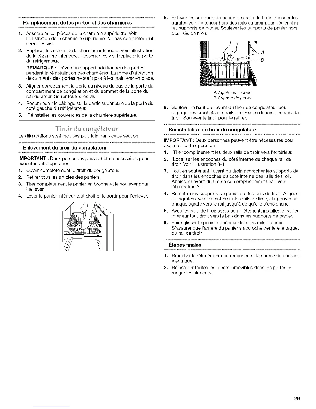 Enlever les supports de panier des rails du tiroir. Pousser les