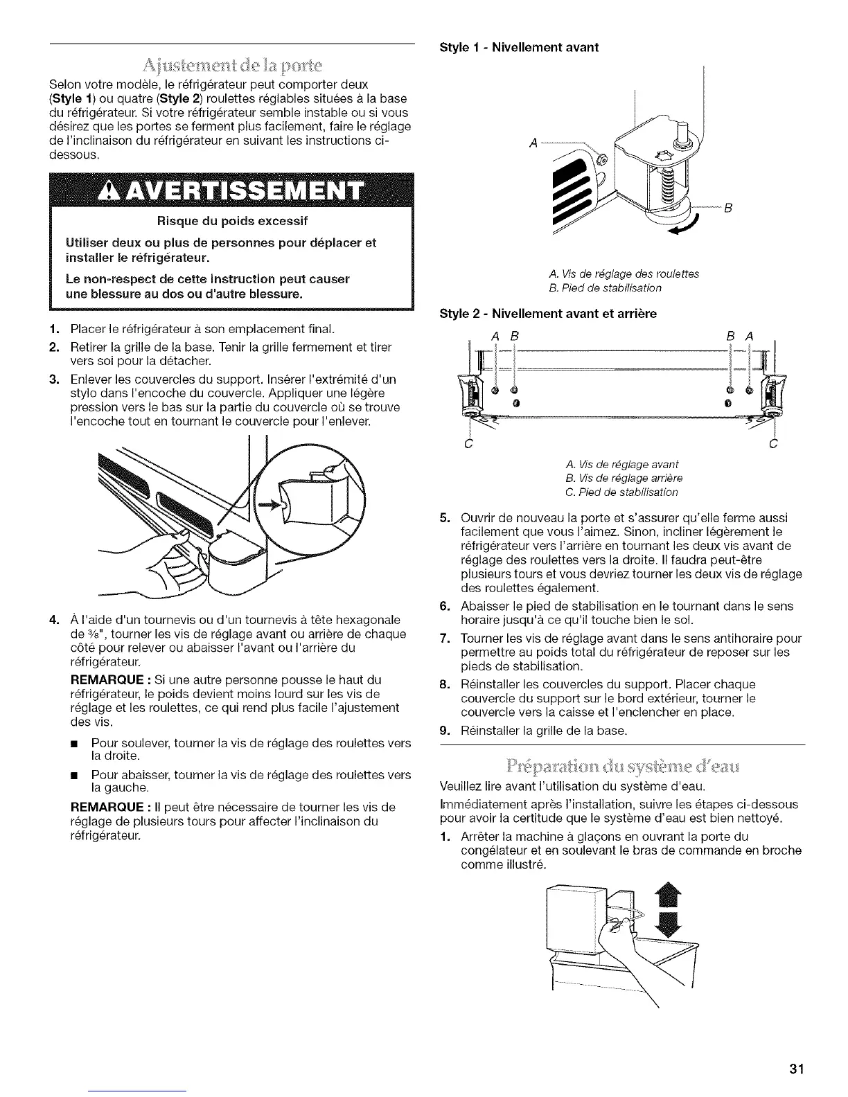 du refrigerateur. Si votre refrigerateur semble instable ou si vous