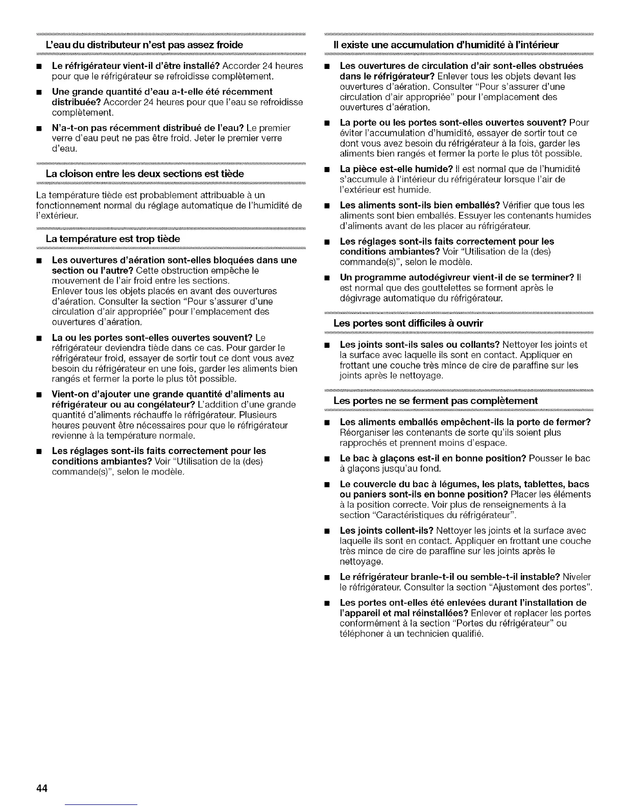 • Le bac a gla£ons est-il en bonne position? Pousser le bac