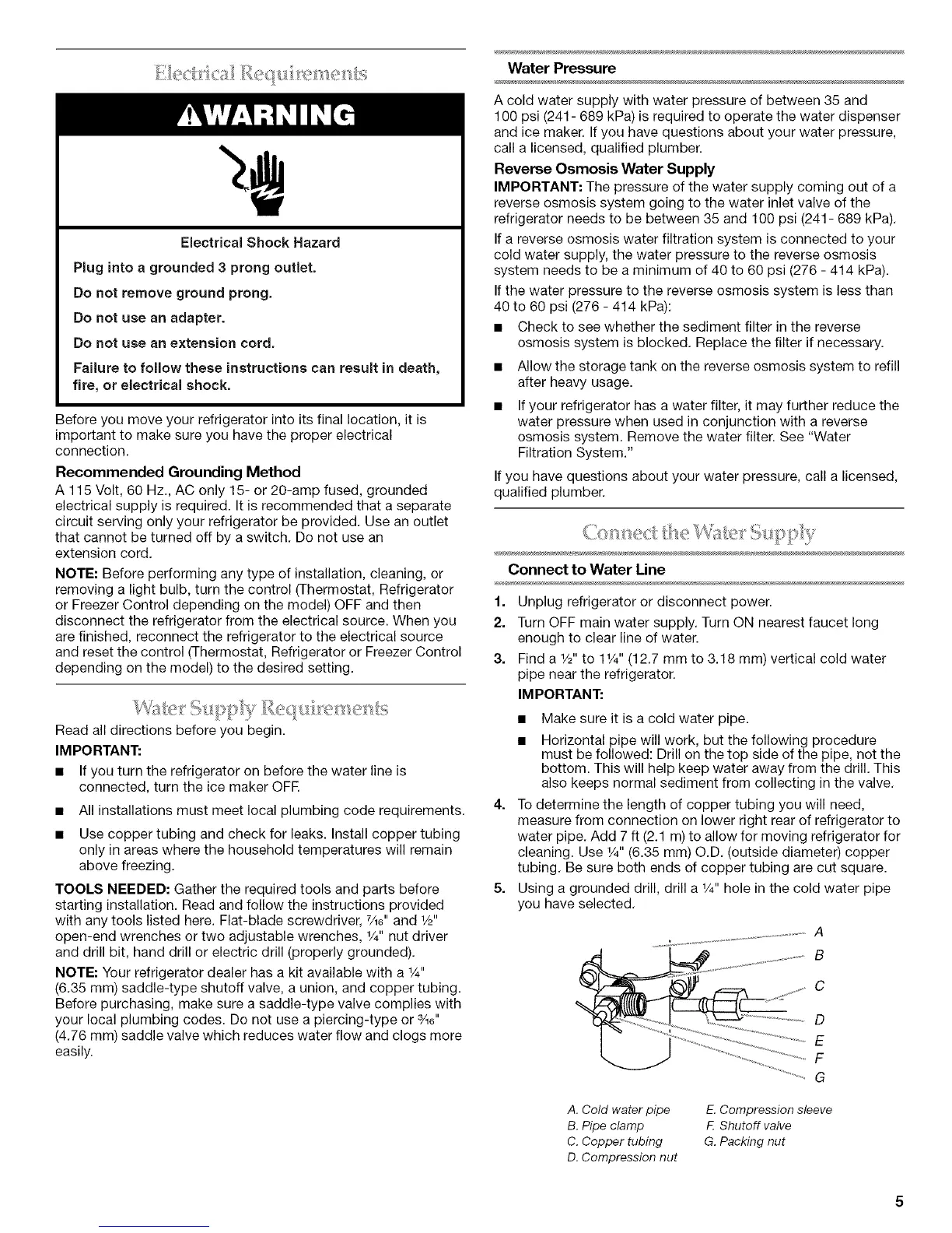 (6.35 mm) saddle-type shutoff valve, a union, and copper tubing.