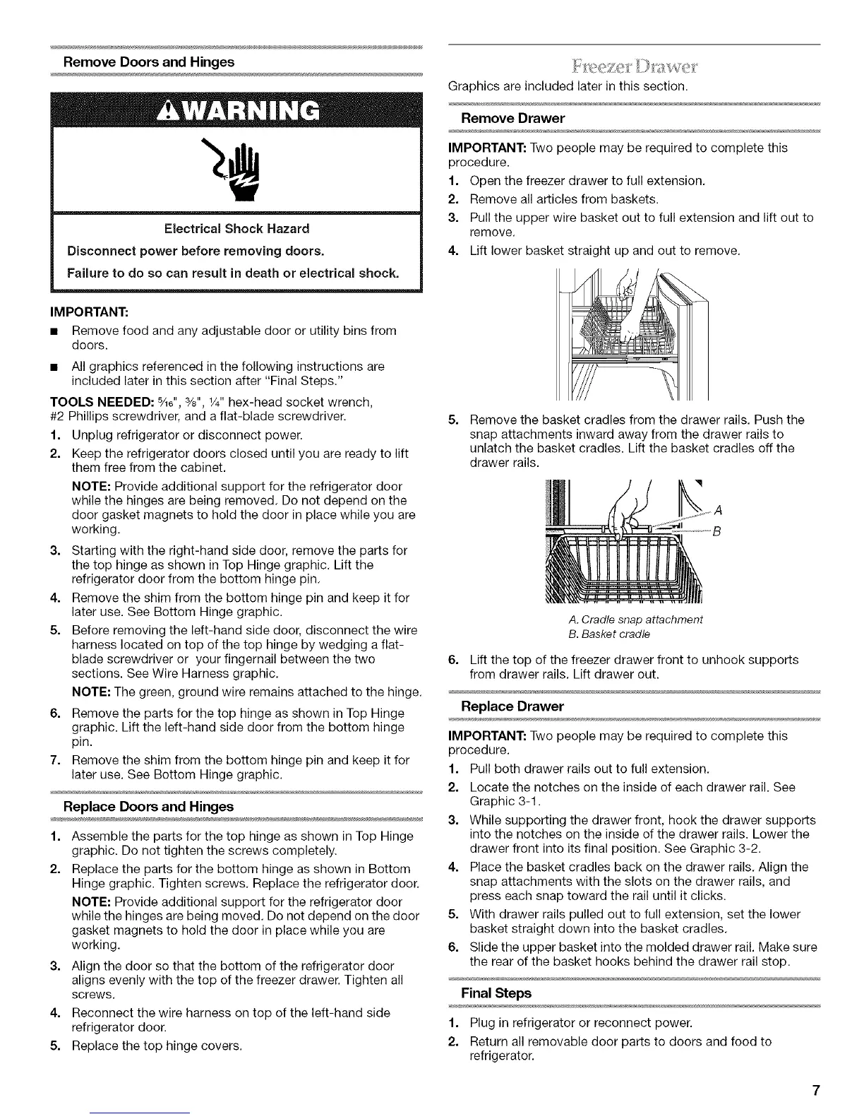6. Remove the parts for the top hinge as shown in Top Hinge