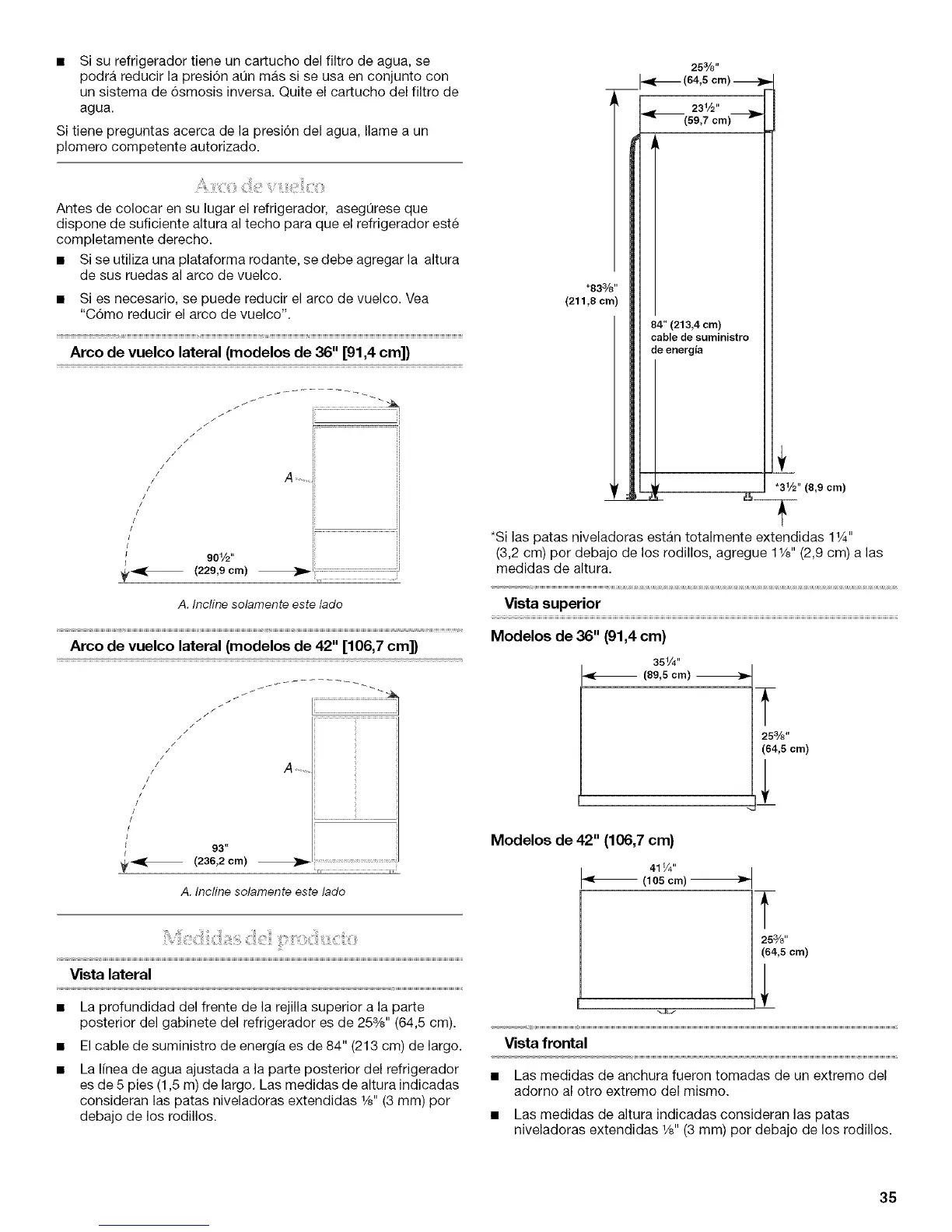 posterior del gabinete del refrigerador es de 25%" (64,5 cm).