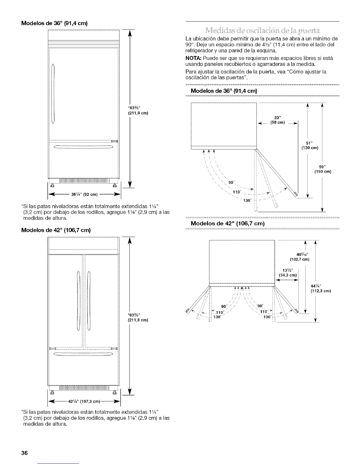 Modelos de 36" (91,4 cm)