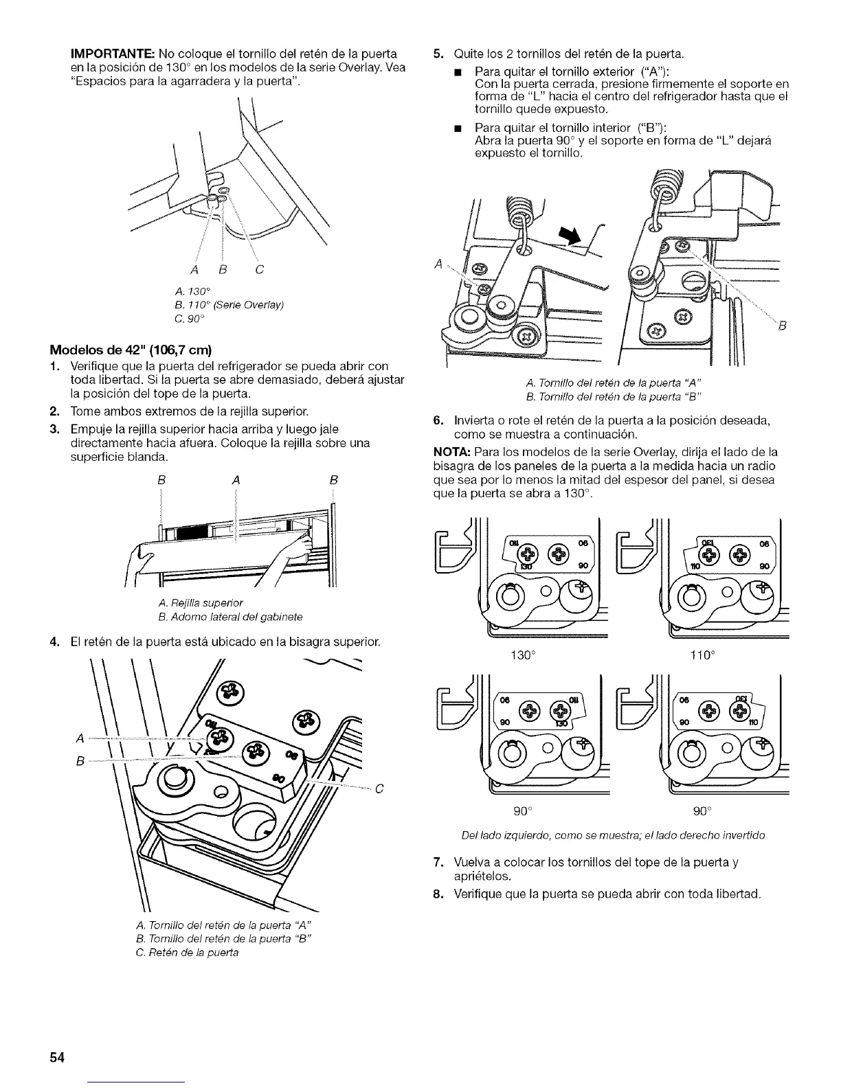 en la posici6n de 130 ° en los modelos de la serie Overlay. Vea