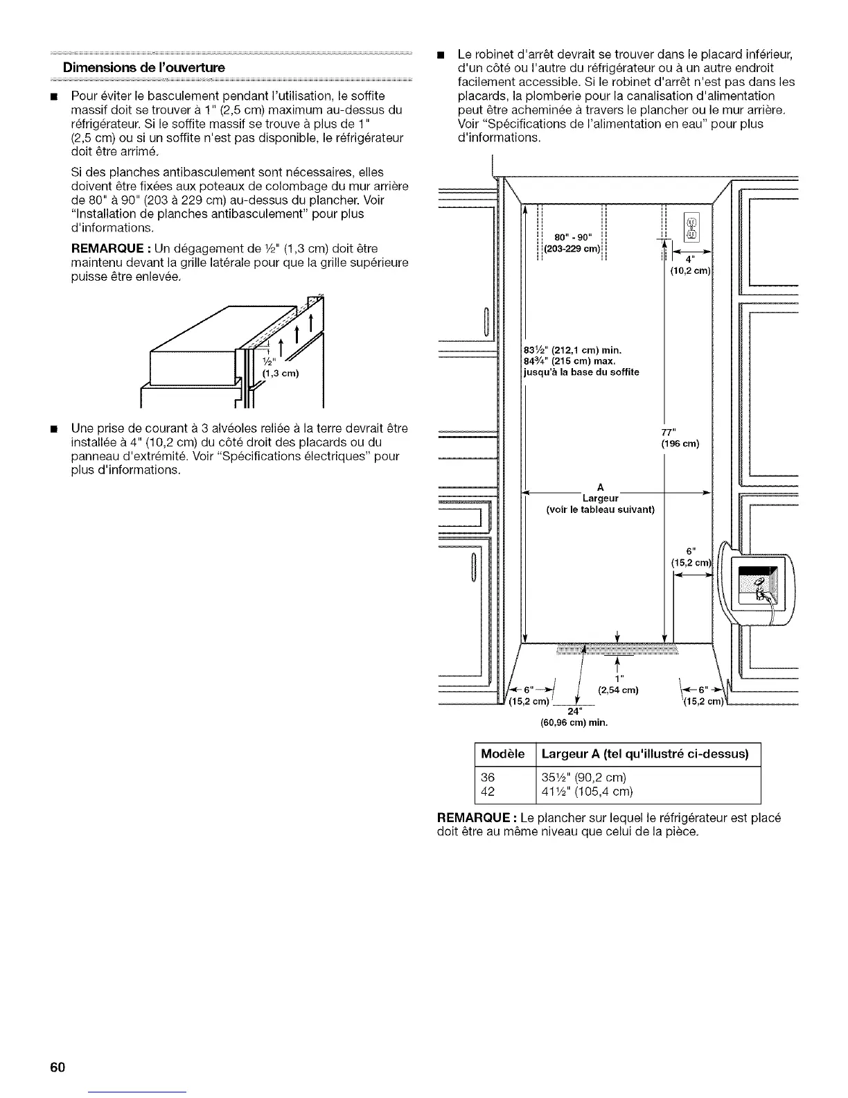 REMARQUE : Un degagement de 1/2"(1,3 cm) dolt _tre
