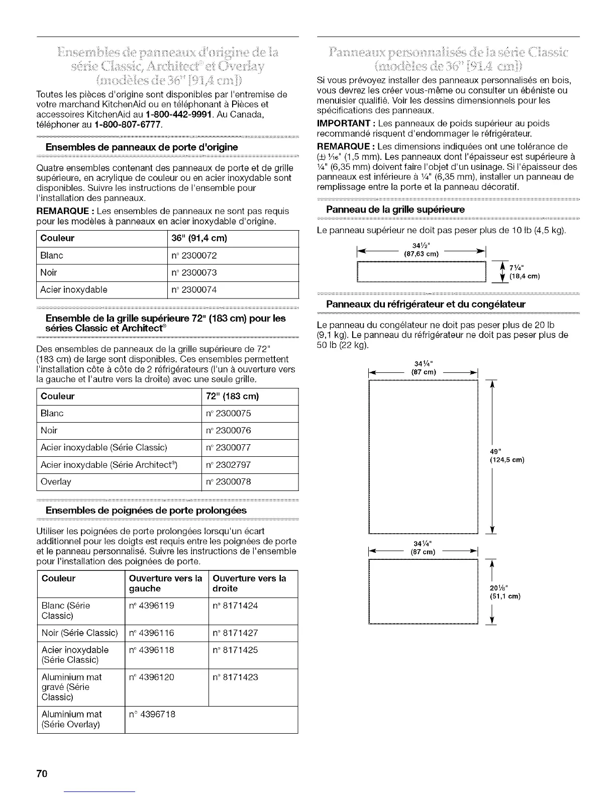 (9,1 kg). Le panneau du refrigerateur ne dolt pas peser plus de