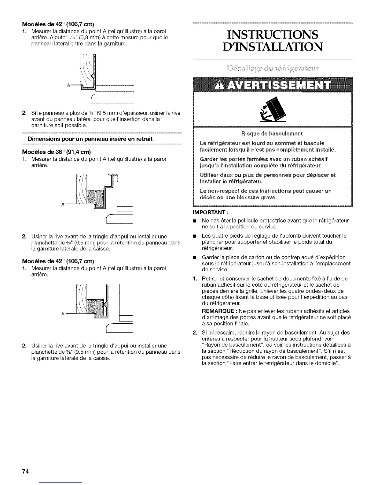 "Rayon de basculement", ou voir les instructions d6taillees