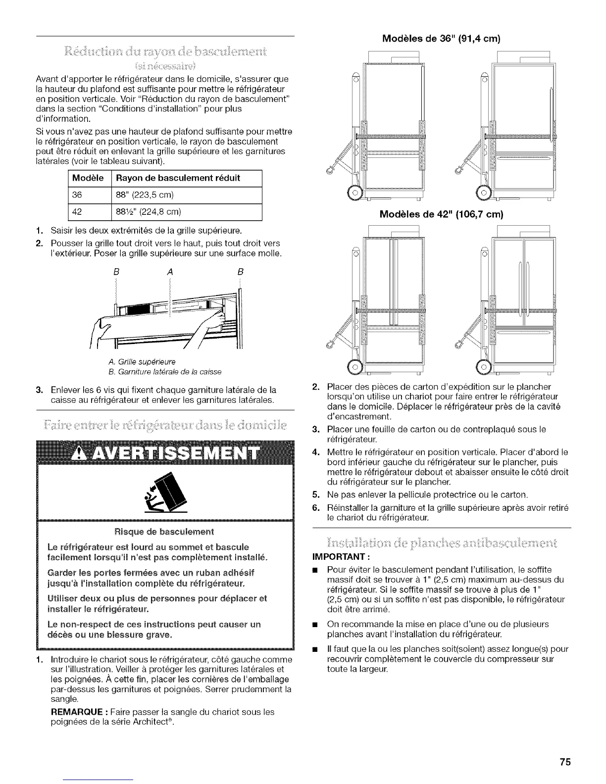 (2,5 cm) ou si un soffite n'est pas disponible, le rdrigerateur